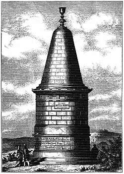 - kamenný kužel se zaobleným hrotem; válec a kužel vytvářejí tambur s římsou jako charakteristický novorenesanční architektonický prvek,