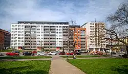 ![]() Východní část náměstí zaujímá Vyšší odborná škola uměleckoprůmyslová a Střední uměleckoprůmyslová škola | |||