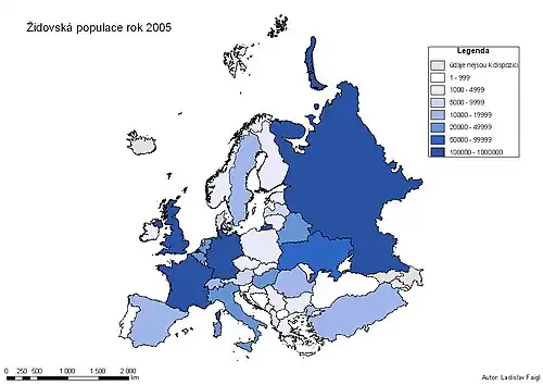 Zdroj dat: American Jewish Committee Archives Archivováno 4. 8. 2019 na Wayback Machine. (rok 2005)