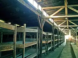 Součástí propagandy mělo být také zřízení „rodinného tábora“ v Birkenau, kam byla část Židů deportována. Důvodem deportací byla také obava, že by se v Terezíně mohla odehrát podobná vzpoura vězňů jako třeba ve varšavském ghettu – do Birkenau byli tudíž deportováni zejména fyzicky zdatnější Židé. Ti po příjezdu skutečně nebyli hned zavražděni, ale ubytováni v dřevěných barácích.[51]