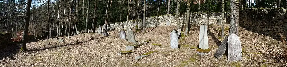 V areálu o rozloze 1624 m² s vchodem z jižní strany[3] se dochovalo přes 170 náhrobních kamenů patřících židovským rodinám z širokého okolí.[4] Nedochovala se již deska s hebrejským nápisem Bais mouevits l'cholchai. Khi ufor athu vael ufor thošuf, v překladu Dům shromáždění všech živých. Prach a země jsi a v prach a zemi se navrátíš.[5]