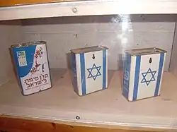 Modré pokladničky pro dary byly ŽNF distribuovány téměř od jejího počátku. Umisťovaly se do obchodů, úřadů, předsíní synagog i soukromých domů.[6] Díky svému velkému rozšíření se staly jedním z nejznámějších symbolů sionismu.