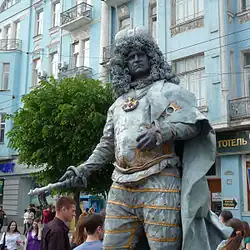 Živou sochu představuje člověk, který je oděn do šatů příslušné barvy nebo také nabarven speciální barvou tak, že působí jako socha. Obvykle však mění svou podobu, pozici a také v rámci představení „ožívá“.