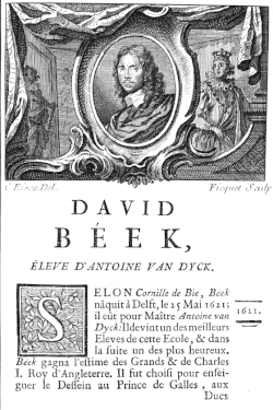 - ↑ „Het Gulden Cabinet vande Edel Vry Schilder-Const“ nebo „Zlatý kabinet vznešeného svobodného umění malby“ je kniha vlámského notáře ze 17. století Cornelise de Bie, publikovaná v Antverpách. Je napsaná v nizozemském jazyce, obsahuje biografie umělců a texty s rytinami portrétů umělců ze 16. a 17. století, převážně z jižního Nizozemska. Práce je velmi důležitým zdrojem informací o umělcích, které popisuje. Dílo tvořilo hlavní zdroj informací pro pozdější historiky umění jako byl Arnold Houbraken a Jacob Campo Weyerman. Bylo vydáno v roce 1662, ačkoliv je možné, že bylo vydáno až 1691.