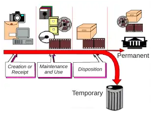 Ve 30. letech 20. století hrál Emmett Leahy z Národního archivu Spojených států amerických ústřední roli při vývoji programu, který definoval životní cyklus záznamů od jejich vzniku a používání až po případné zničení nebo archivaci.[2]