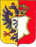 Znak rakouského období: má podobu štítu rozděleného na poloviny, na pravé straně je polovina erbu rodu Sobieského (erb Janina), na levé je polovina erbu rodu Radziwillů.
