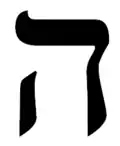 ![]() Písmeno he napsané hebrejským patkovým písmem | |