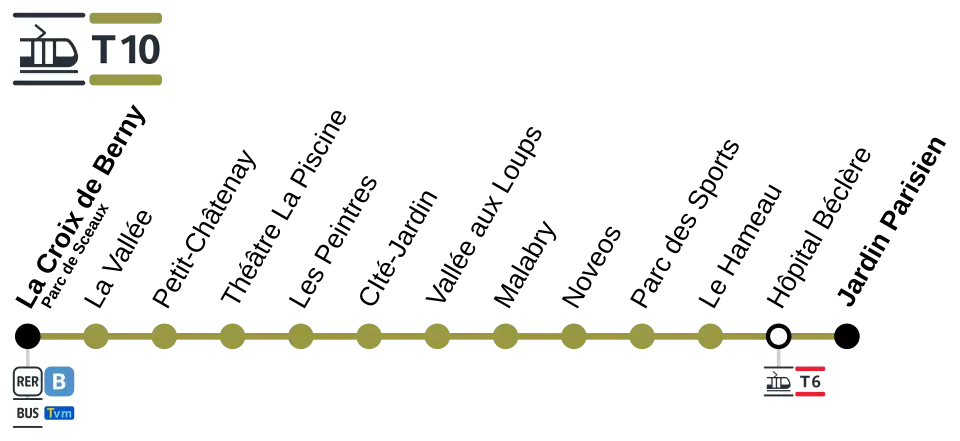 Linka T10 je jednou z linek tramvajové dopravy v regionu Île-de-France. V systému MHD je značena světle zelenou barvou, její délka je 6,8 km a má celkem 13 zastávek. Île-de-France Mobilités odhaduje, že linku bude využívat 25 až 30 tisíc cestujících denně.