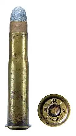 Jedná se o náboj se středovým zápalem a zápalkou typu Berdan. Mosazná nábojnice má okraj a dno typu Mauser, nepříliš výrazný kužel a dlouhý krček. Nábojnice byla plněna černým prachem o hmotnosti 5,25 g. Olověná střela vážící 25 g s oblou špičkou a papírovým límečkem dosahovala úsťové rychlosti 455 m/s a energie 2 580 J.[1]