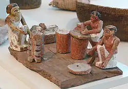 Busta Amenemhhat I. z Tanis z červené žuly. [1]Busta Senwosreta III.Dřevěný model kuchyně; 12. dynastie