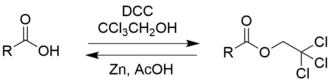 2,2,2-Trichlorethanol je účinnou chránicí skupinou u karboxylových kyselin, jelikož jej lze snadno připojit i odstranit.[5]