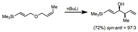 - ↑ K. Mikami; N. Kishi; T. Nakai. Silicon-directed regiocontrol in Witting rearrangements of bis-allyl ethers and allyl propargyl ethers. Chemical Letters. 1989, s. 1683–1686. doi:10.1246/cl.1989.1683.