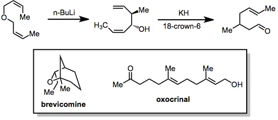 Produkty [2,3]-Wittigova přesmyku bis(allyl)etherů jsou 1,5-dien-3-oly. Tyto sloučeniny mohou vstupovat do oxy-Copeových přesmyků po deprotonaci a vytvořit tak δ,ε-nenasycené karbonylové sloučeniny. Tímto způsobem byly [2,3]-Wittigovy přesmyky zahrnuty do přípravy několika přírodních látek, jako jsou například brevikomin a oxokrinol.[14]