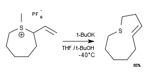 - ↑ Ring expansion by 2,3-sigmatropic shifts of unstabilized sulfonium ylides. Synthesis of eight- to ten-membered thiacycloalk-4-enes V. Cere, C. Paolucci, S. Pollicino, E. Sandri, and A. Fava The Journal of Organic Chemistry 1978 43 (25), 4826-4831 doi:10.1021/jo00419a024