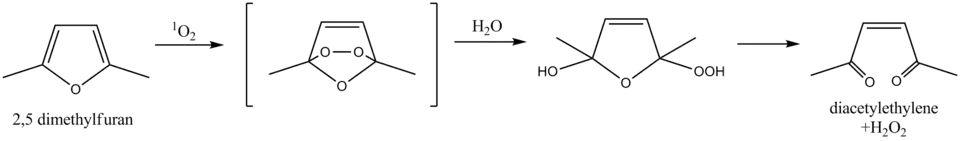 2,5-dimethylfuran se dá použít k zachytávání singletového kyslíku a jeho stanovení ve vodě. Mechanismus spočívá v Dielsově–Alderově reakci a hydrolýze, které vedou ke vzniku diacetylethylenu a peroxidu vodíku. Ke stejnému účelu může sloužit i furfurylalkohol.[9]