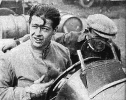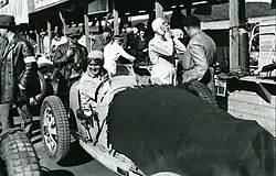 Vítězný Louis Chiron po dojetí do cíle (Masarykův okruh 1931)