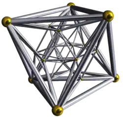 Prvních 8 vrcholů jsou vrcholy 16nadstěnu a zbývajících 16 jsou vrcholy k němu duálnímu teseraktu.
