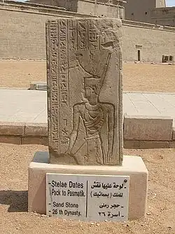 - ↑ LABUDEK, Joanna. Late period Stele from Saqqara [online]. University of Birmingham, Institute of Archaeology and Antiquity, 2010. S. 133, 386. Master of Philosophy- disertation. Dostupné online. (anglicky)