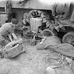 ![]() Sherman Crab z Westminster Dragoon s pěchotou z 2nd Agryll and Sutherland Highlanders během postupu jihovýchodně od Beringe. 22. listopadu 1944 | |