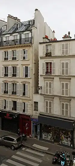Dům vznikl v úzkém průchodu mezi Rue du Château-d'Eau a Rue du Faubourg-Saint-Martin jako důsledek sporu mezi dědici tohoto průchodu.