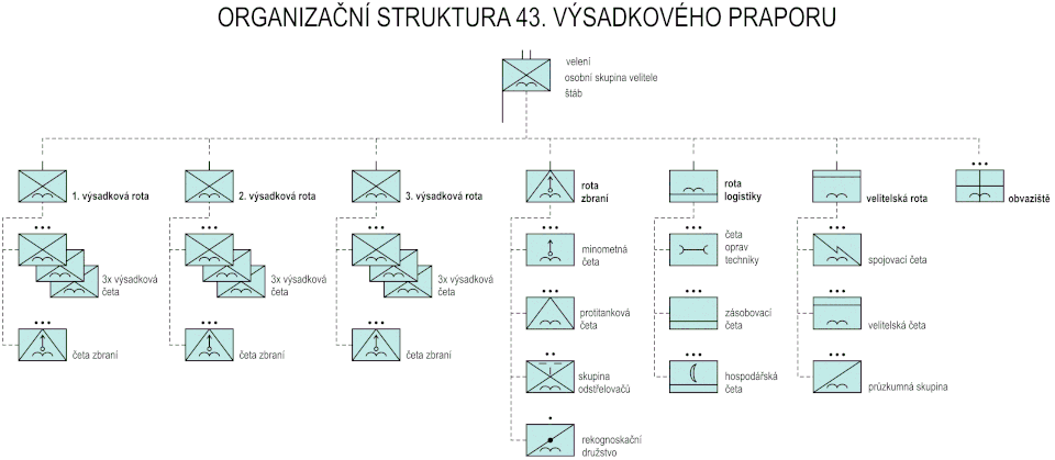 - ↑ a b c d ORGANIZAČNÍ STRUKTURA [online]. 43. výsadkový pluk [cit. 2020-10-03]. Dostupné online.