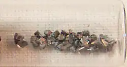 Kousky tantaluTantal je velmi podobný niobu, proto trvalo dost dlouho, než byly niob (columbium) a tantal odlišeny. V roce 1809 anglický lékař a chemik William Hyde Wollaston porovnal oxidy odvozené z columbitu s hustotou 5,918 g/cm3 a tantalitu s hustotou přes 8 g/cm3. Došel k závěru, že navzdory rozdílu v hustotě, jsou identické a pojmenoval je tantal. Tento závěr byl zpochybněn v roce 1846 německým chemikem Heinrichem Rosem, který tvrdil, že ve vzorku tantalitu jsou dva různé prvky a pojmenoval je po Tantalových dětech: niob (z Niobe) a pelopium (z Pelops). Tato záměna vznikla z minimálních rozdílů mezi tantalem a niobem. Údajné nové prvky pelopium, ilmenium a dianium byly ve skutečnosti identické s niobem nebo směsí niobu a tantalu. Čistý tantal se začal vyráběl až v roce 1903.