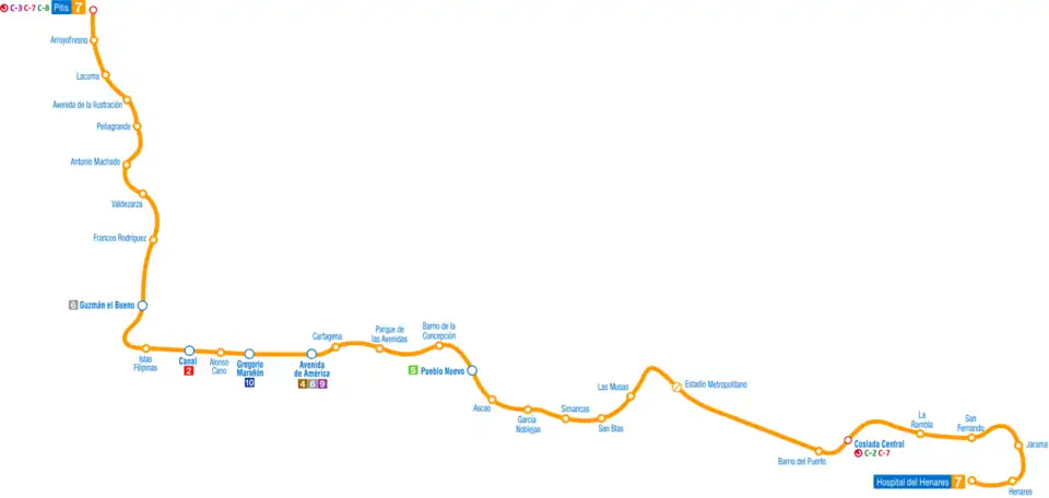 | ← směr Pitis | Metro v Madridu – Linka 7 |