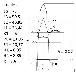 - ↑ HÝKEL, Jindřich; MALIMÁNEK, Václav. Náboje do ručních palných zbraní. Praha: Naše vojsko, 2002 (dotisk 2006). ISBN 80-206-0641-6.