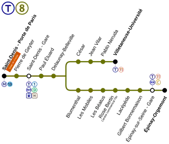 V tomto článku byl použit překlad textu z článku Ligne 8 du tramway d'Île-de-France na francouzské Wikipedii.
