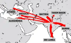 Díky Ašókově snaze se buddhismus rozšířil i do jižní části Indického subkontinentu, konkrétně do království Chola, Pándjů a oblasti Tamraparni v dnešním Tamilnádu. Snažil se též vnést buddhismus mezi řecké komunity žijící v oblasti Gandháry, Gendrósie i Kandaháru, Ašókovo působení lze též rozeznat v oblasti Kambódže.