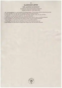 - ↑ Není ANO jako ANO! V eurovolbách kandidují strany s podobnými názvy. tn.nova.cz [online]. 2019-05-16 [cit. 2019-05-23]. Dostupné online.