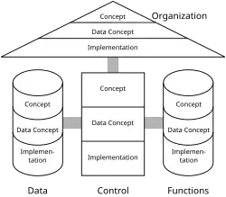 - Logický koncept: Model vytvořený na základě podnikové reality, tento koncept zahrnuje modelování podnikových procesů, datové modelování, organizační model podniku, model produktů podnikových procesů, model funkční struktury podniku.