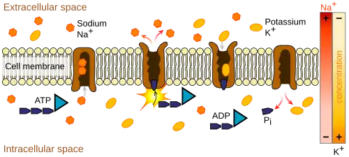 | Na+/K+ ATPáza | 3 Na+ za 2 K+ | Tvorba a udržování gradientu sodných a draselných iontů napříč plazmatickými membránami většiny buněk[2] |