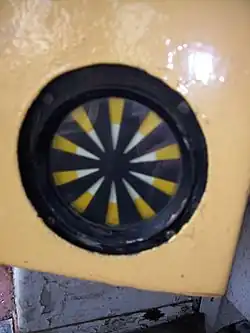 - ukazatele na stanovišti strojvedoucího v podobě žlutého světla s černým ornamentem označovaného jako „AWS slunečnice“