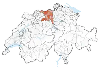 - Kanton Aargau (dnešní okresy Aarau, Brugg, Kulm, Lenzburg a Zofingen).
