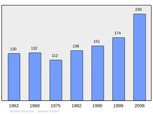 - ↑ Populations légales 2012 de la commune [online]. INSEE, 2014 [cit. 2015-10-30]. Kapitola 25001-Abbans-Dessous. Dostupné online. (francouzsky)