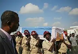 25. 3. 2012 ceremoniál převozu těla do Puntlandu (letiště Mogadišu)