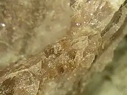 - Optické vlastnosti: Barva: bledě hnědá. Lesk skelný, průhlednost: průhledný, vryp bílý.