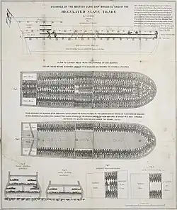 Plakát zobrazující podmínky při převozu otroků z Afriky do Ameriky, který burcoval veřejnost v Anglii a USA proti obchodu s otroky