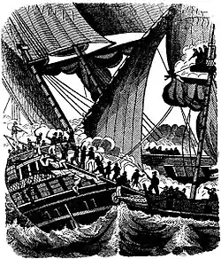 - Zahákování – pěchotní útok po přiražení bokem k boku, s cílem obsazení plavidla a zmocnění se nejen nákladu, ale i plavidla samotného. Byla to jedna z běžných taktik veslových a plachetních lodí už od starověku. Svůj význam postupně ztrácela s rozvojem střelných zbraní, především dělostřelectva, v jehož důsledku se vzdálenost mezi bojujícími loděmi stále zvětšovala. Z námořních bitev však nikdy zcela nevymizela, jak dokazuje případ jejího použití proti tankeru Altmark za druhé světové války (Incident Altmark) nebo i novodobého pirátství. Také bývá tato taktika popisována v dobrodružné literatuře o korzárech.