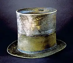 Klobouk Abrahama Lincolna pochází z poloviny 19. století. Tento klobouk získal od J.Y. Davise, výrobce klobouků z Washingtonu. Lincoln nechal přidat černou hedvábnou smuteční pásku na památku svého syna Willieho. Naposledy si ho oblékl 14. dubna 1865 do Fordova divadla. Po Lincolnově smrti byl klobouk se svolením Mary Lincolnové předán patentovému úřadu, který jej v roce 1867 uložil ve Smithosonově institutu. Klobouk se nesměl několik let vystavovat veřejnosti. Poprvé byl vystaven až v roce 1893 během výstavy, kterou pořádala Lincoln Memorial Association. V institutu je uložen dodnes.[8]