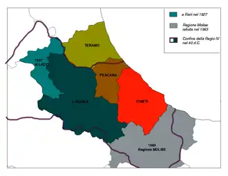 Abruzzo je od roku 1964 samostatnou oblasti. Předtím bylo spolu s Molise, v oblasti Abruzzo-Molise.
