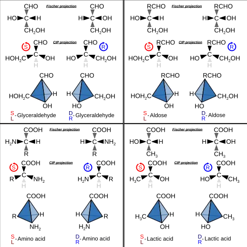 Označení ᴅ/ʟ nemá spojitost s (+)/(−), neoznačuje, který enantiomer je levotočivý a který pravotočivý, místo toho naznačuje, zda je stereochemie sloučeniny podobná pravotočivému či levotočivému enantiomeru glyceraldehydu. Pravotočivý glyceraldehyd je ᴅ-izomer. 9 z 19 ʟ-aminokyselin běžně tvořících bílkoviny je (pro vlnovou délku 589 nm) pravotočivých a ᴅ-fruktóza bývá v důsledku své levotočivosti také nazývána levulóza.