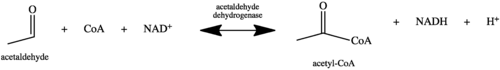 Acetaldehyd + NAD+ + koenzym A ↔ acetyl-CoA + NADH + H+