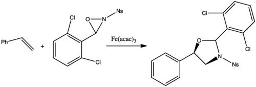 Fe(acac)3 je také možné zapojit do katalýzy reakcí N-sulfonyloxaziridinů s alkeny za vzniku 1,3-oxazolidinů.[6]
