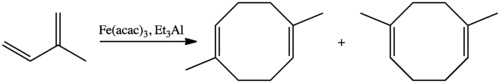 Fe(acac)3 katalyzuje dimerizaci isoprenu na směs 1,5-dimethyl-cyklookta-1,5-dienu a 2,5-dimethyl-cyklookta-1,5-dienu.[4]