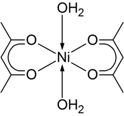 - ↑ M. Kudrat-E-Zahan; Y. Nishida; H. Sakiyama. Identification of cis/trans isomers of bis(acetylacetonato)nickel(II) complexes in solution based on electronic spectra. Inorganica Chimica Acta. 2010, s. 168–172. doi:10.1016/j.ica.2009.09.011.
