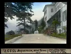 Zájem o termální léčbu v Acquarosse podpořily publikace Angela Scarenzia, profesora medicíny a mezinárodně uznávaného dermatologa, který vyučoval na univerzitě v Pavii. Absolvent jeho fakulty byl jmenován prvním lékařským ředitelem termálních lázní. V roce 1882 koupil vládní komisař Domenico Andreazzi pozemky s pramenem od obcí Lottigna, Dongio, Leontica a Corzoneso. Od té doby jsou prameny v soukromých rukou, přestože právník a místní politik Ambrogio Bertoni z Lottigny marně usiloval o dočasnou koncesi. Provozní společnost, založená v roce 1882, pověřila stavbou architekta Giuseppe Martinoliho, v roce 1886 otevřela lázeňský hotel Albergo delle Terme a z Acquarossy vybudovala turistické centrum údolí. V roce 1918 měl hotel 70 lůžek v 55 pokojích. Další lůžka byla nabízena hostům v okolních penzionech. K dispozici byl park, několik restaurací, pošta s telefonem a telegrafem a dostavníková služba, nebo od roku 1911 železniční spojení pomocí trati Biasca–Acquarossa v osadě Comprovasco. Zpočátku byly lázně na severu Alp téměř neznámé a až do vypuknutí první světové války sem jezdili především turisté z Ticina a Itálie.[4][5]