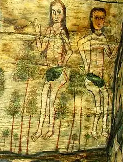Podle biblického vyprávění usadil Bůh Adama a Evu (tj. člověka a jeho ženu) do zahrady Edenu, kde žili spolu s Bohem. Avšak Adam s Evou se dopustili hříchu, porušili Boží příkaz a byli ze zahrady vyhnáni. Jejich provinění spočívalo v tom, že jedli zakázané plody ze stromu poznání dobra a zla. Byl to však had (nachaš), který přesvědčil Evu, aby jedla, a Eva přesvědčila Adama.[2]