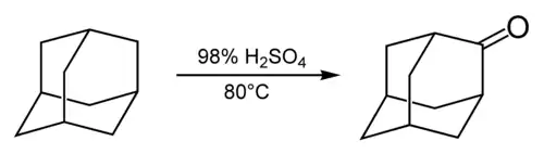 Působením koncentrované kyseliny sírové vzniká adamantanon.[31]
